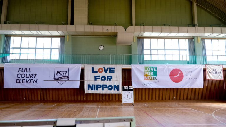 「LOVE FOR NOTO Song of the Earth 能登開催 2025」の会場は、能登半島地震で津波被害を受けた内浦総合運動公園の体育館でした。イベント2ヶ月前から現地の方やボランティアのみなさんと公園の清掃作業をおこない、見事生まれ変わった体育館で試合を開催することができました。
